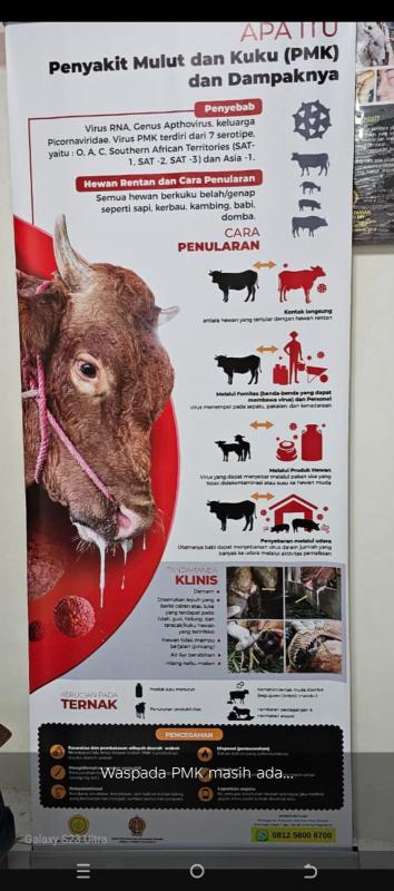 “PMK ini penularannya sangat cepat. Kontak langsung antar ternak, peralatan kandang, bahkan sepatu dan pakaian manusia bisa menjadi media penyebaran virus. Karena itu peternak harus benar-benar waspada,” ujar Eko Mujiyanto.