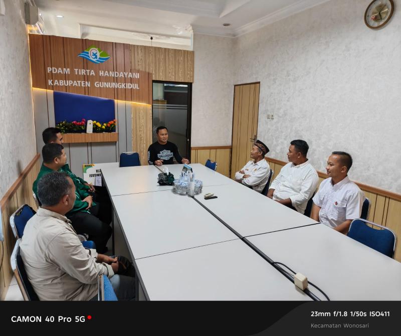 Wonosari (SID Botodayaan) – Lurah Botodayaan melakukan langkah konkret dalam menindaklanjuti Program BMH melalui pengajuan bantuan pipanisasi air bersih ke PDAM Tirta Handayani Kabupaten Gunungkidul. Dalam upaya tersebut, Lurah Botodayaan secara langsung bertemu dengan Direktur Utama PDAM Tirta Handayani, Bapak Sulis, di kantor PDAM Tirta Handayani, Wonosari.