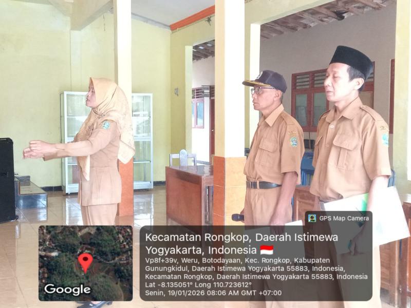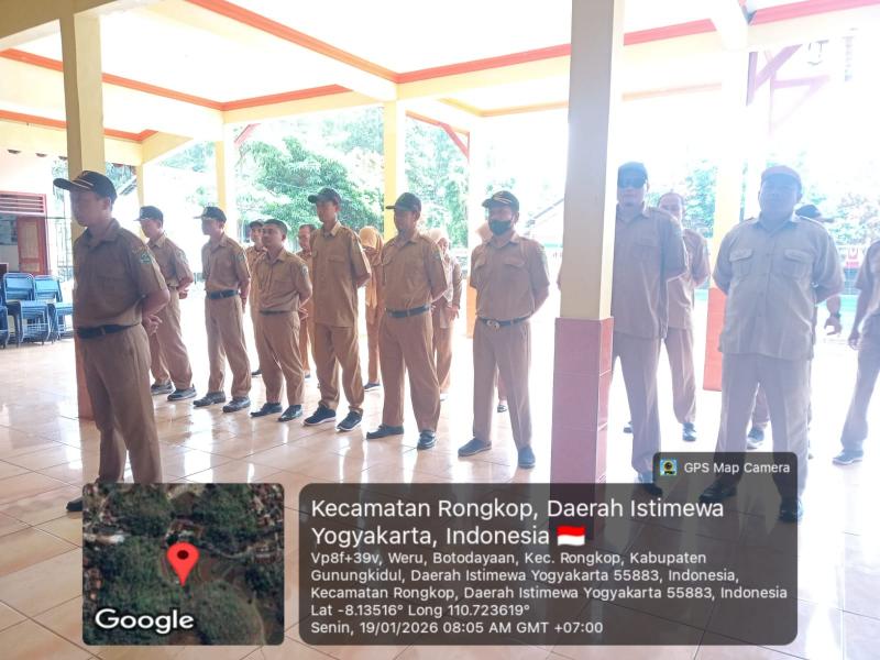 Botodayaan (SID) - Pemerintah Kalurahan Botodayaan melaksanakan apel pagi rutin yang diikuti oleh perangkat kalurahan dan pamong di pendopo kalurahan, Kapanewon Rongkop, Kabupaten Gunungkidul. Apel pagi berlangsung dengan tertib dan penuh khidmat meskipun dilaksanakan tanpa kehadiran Lurah Botodayaan. Senin pagi (19/01/2026),