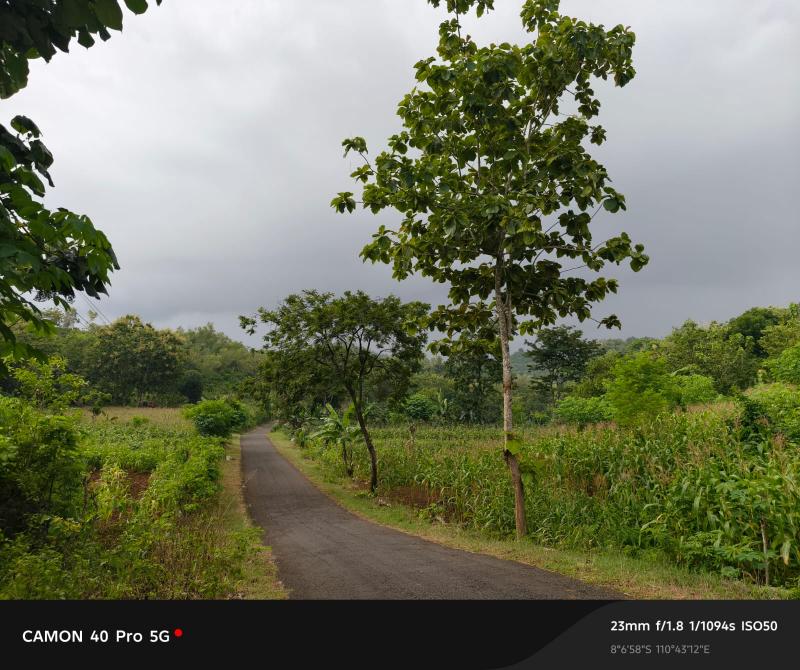 Kondisi cuaca mendung ini terlihat di sepanjang jalan lingkungan yang membelah area pertanian dan pepohonan hijau. Jalan desa tampak lengang, sementara tanaman jagung dan pepohonan di sekitarnya tumbuh subur, menambah kesan asri dan alami di wilayah Botodayaan.