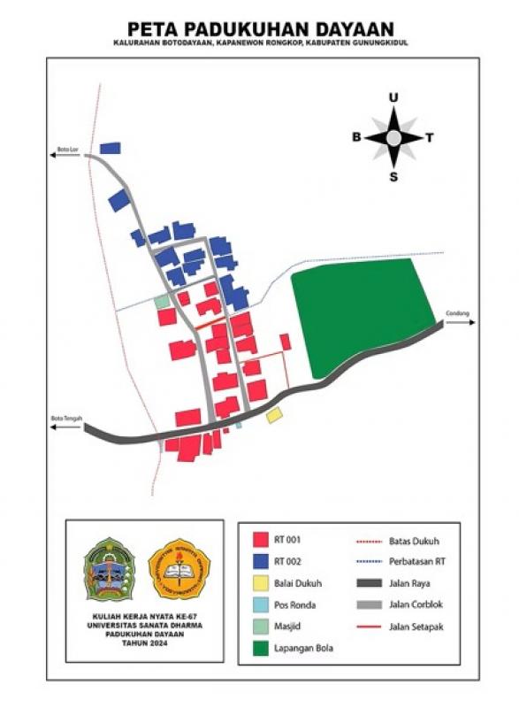 Botodayaan (SID) - Padukuhan Dayaan, Kalurahan Botodayaan, Kapanewon Rongkop, merupakan salah satu wilayah padukuhan yang memiliki tata wilayah jelas dan terstruktur, sebagaimana tergambar dalam Peta Padukuhan Dayaan. Peta tersebut menampilkan sebaran wilayah RT, fasilitas umum, serta akses jalan yang menjadi penunjang aktivitas masyarakat sehari-hari.