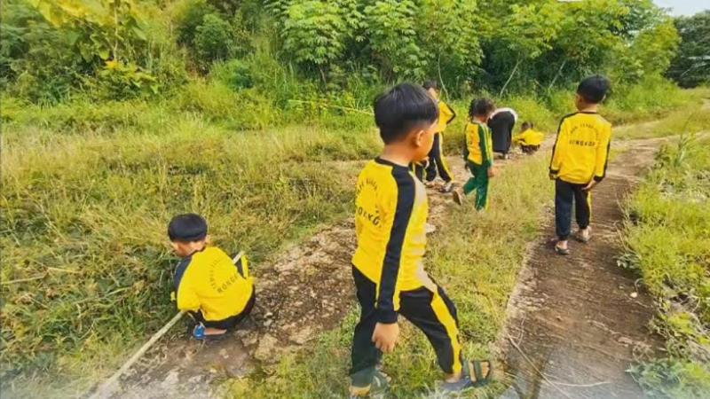 Dengan penuh semangat, anak-anak tampak membersihkan rumput liar dan sampah ringan di sepanjang jalan lingkungan. Kegiatan dilakukan secara sederhana dan disesuaikan dengan kemampuan anak, sehingga tetap aman dan menyenangkan.