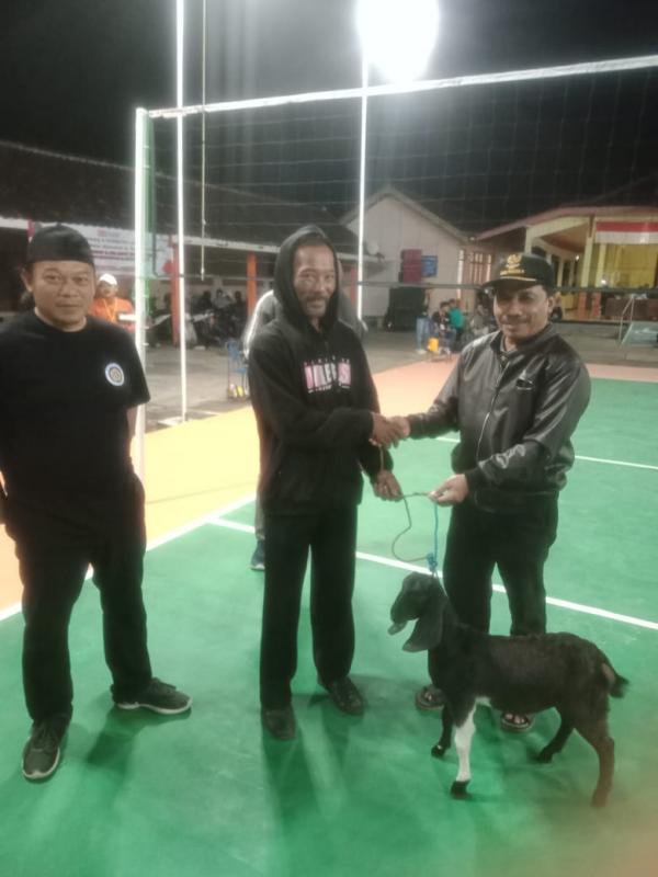 Penewu Anom Kapanewon Rongkop Serahkan Doorprize Kambing di Lapangan Voli Botodayaan