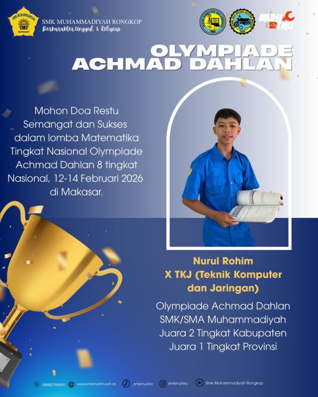 Kepala SMK Muhammadiyah Rongkop, Bapak Pujiyantara, S.Pd., menyampaikan apresiasi dan dukungannya. “Kami sangat bangga atas partisipasi siswa kami dalam OlympicAD VIII ini. Semoga keikutsertaan ini menjadi pengalaman berharga, menambah wawasan, serta memotivasi siswa untuk terus berprestasi dan membawa nama baik sekolah serta daerah,” ungkapnya.