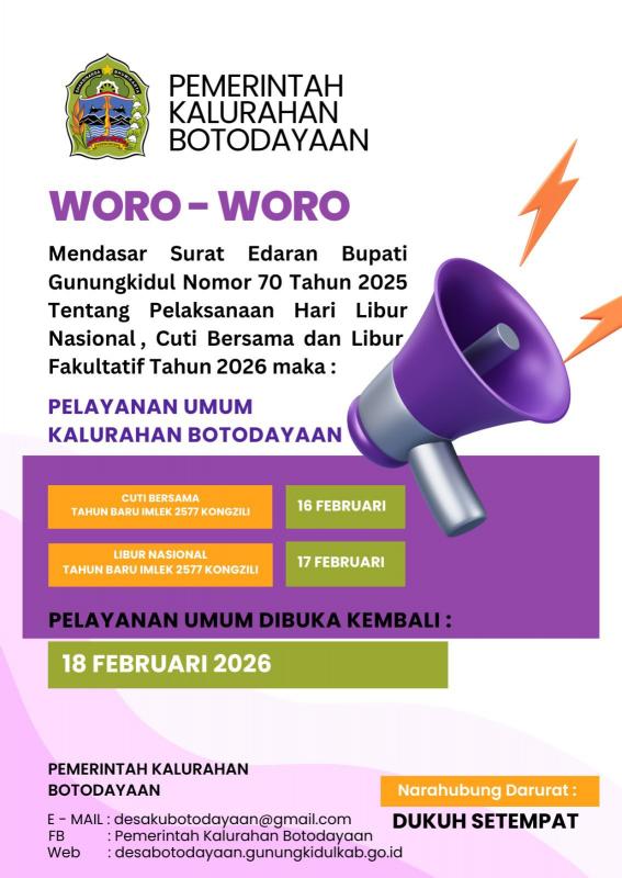 - PENGUMUMAN LIBUR DAN CUTI BERSAMA PEMKAL BOTODAYAAN